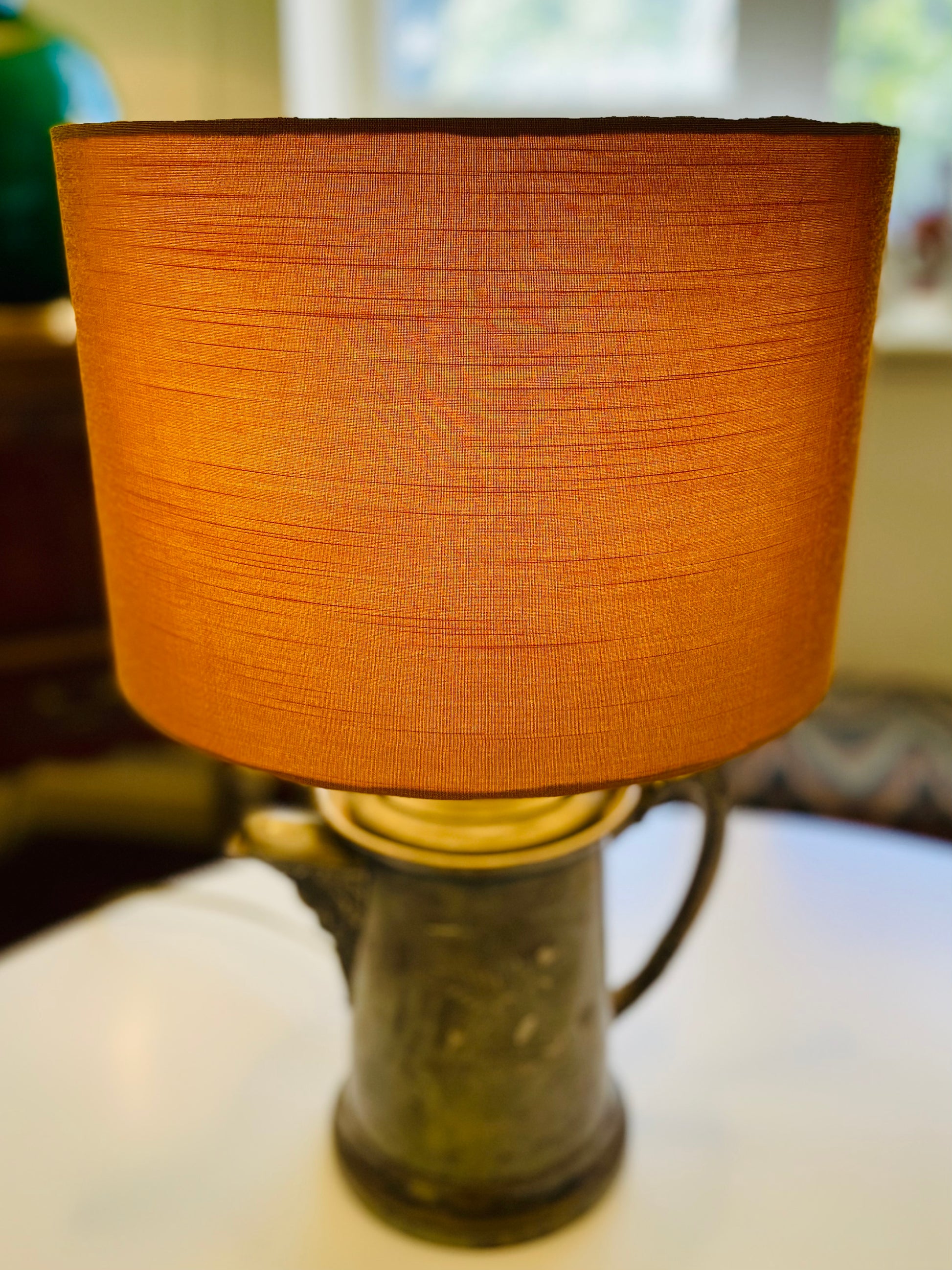 This lampshade is handmade, with vintage, hand printed, hand woven, and/or hand dyed fabric. There will be slight differences, and tiny flaws that would not appear on a mass produced item. I make the shades as carefully as possible, so if there’s ever a problem, please contact me. I’m always happy to work out an exchange or return if you are unsatisfied.