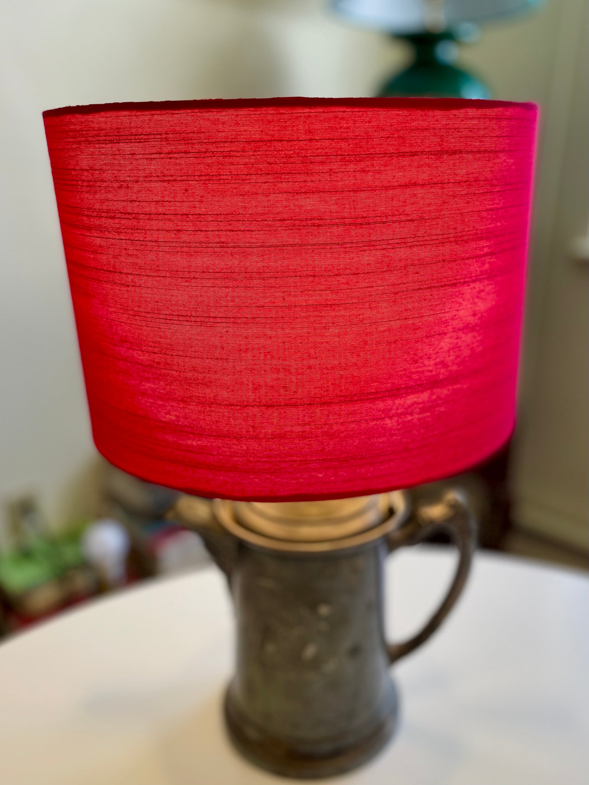 12 Inch Drum Lampshade. Indian Hand Handwoven Raw Silk. Rani Pink.