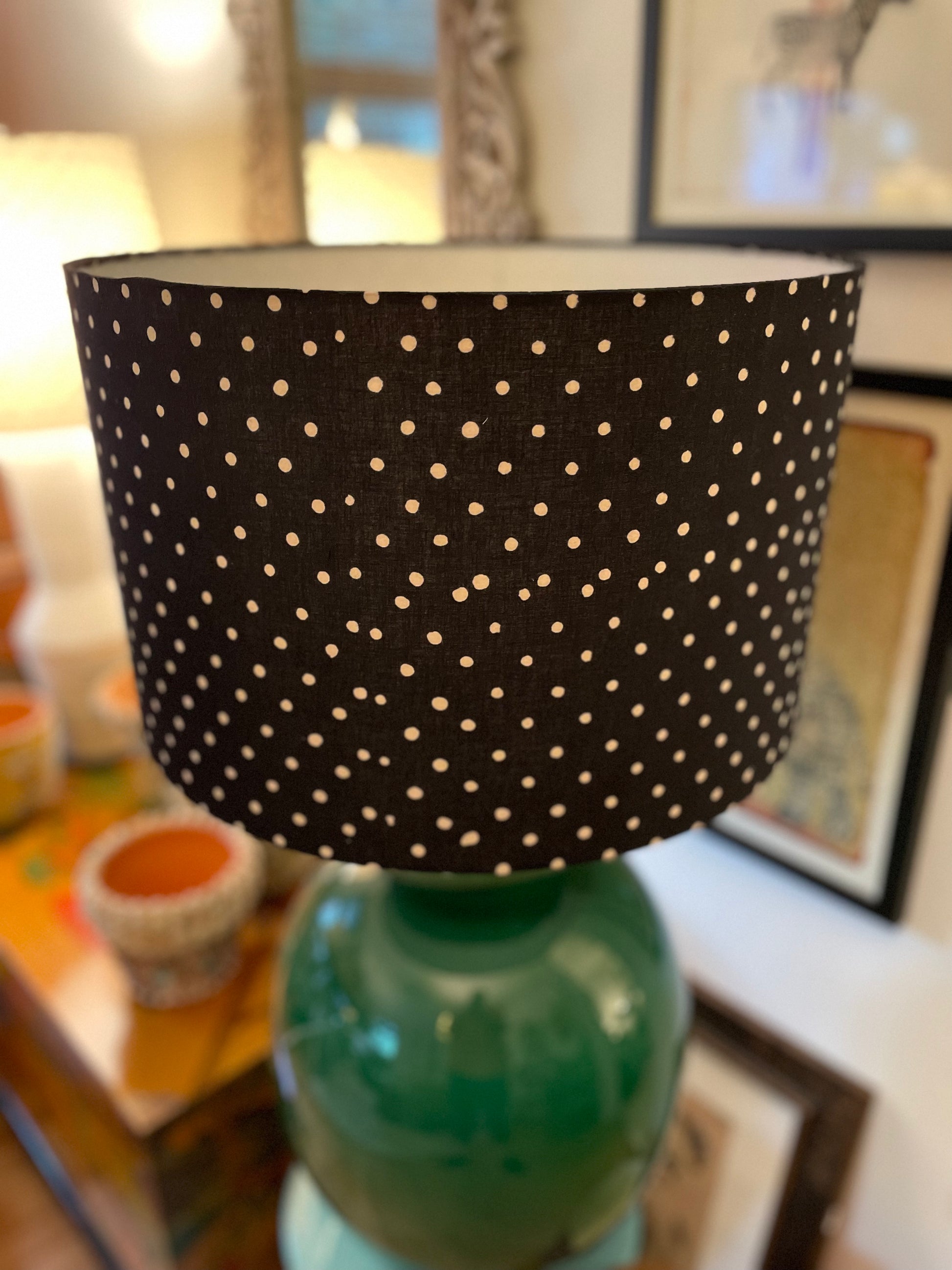 16 Inch Drum Lampshade. Indian Hand Block Print. Black with Gentle Off-White Polka Dot.
