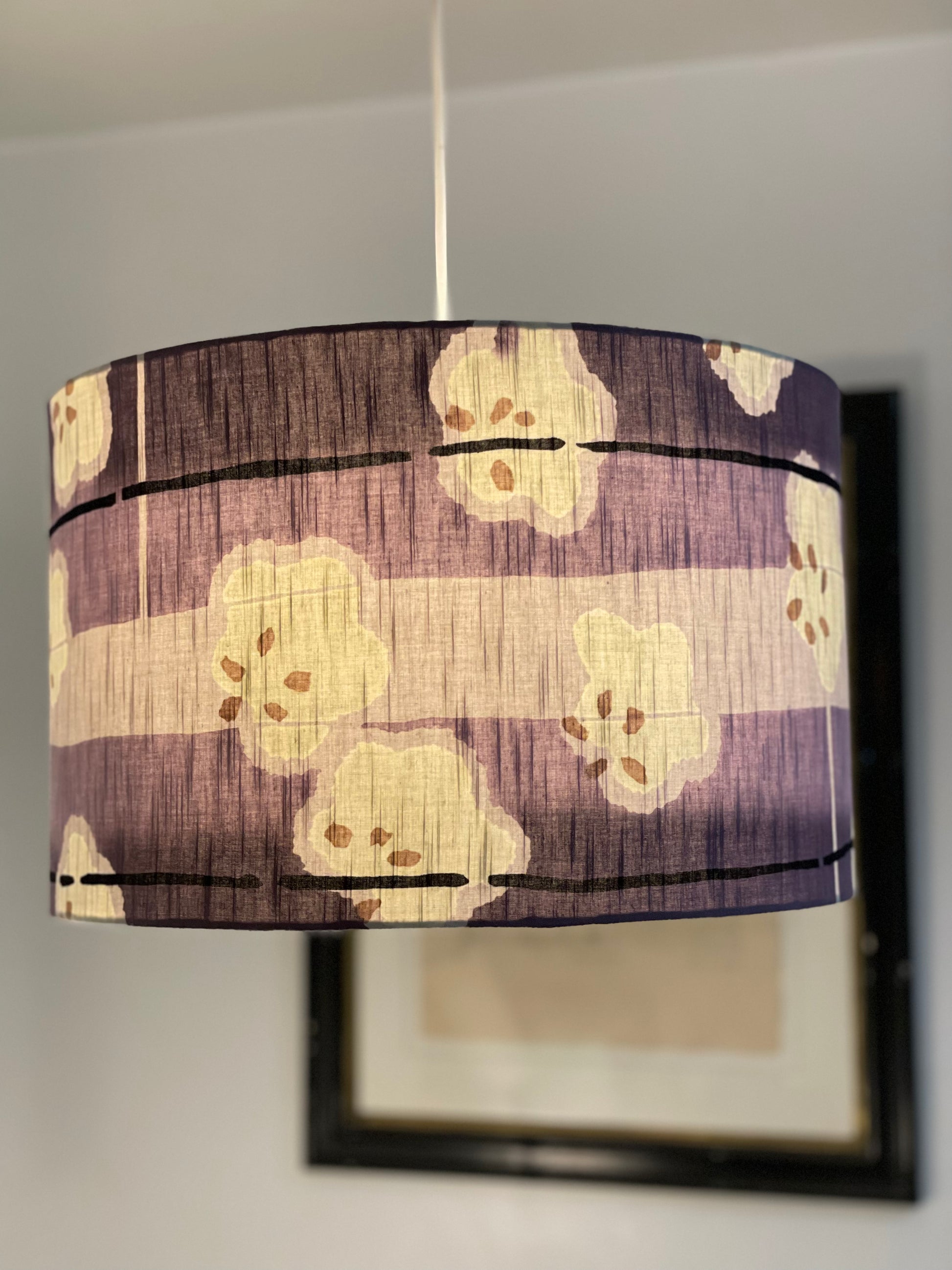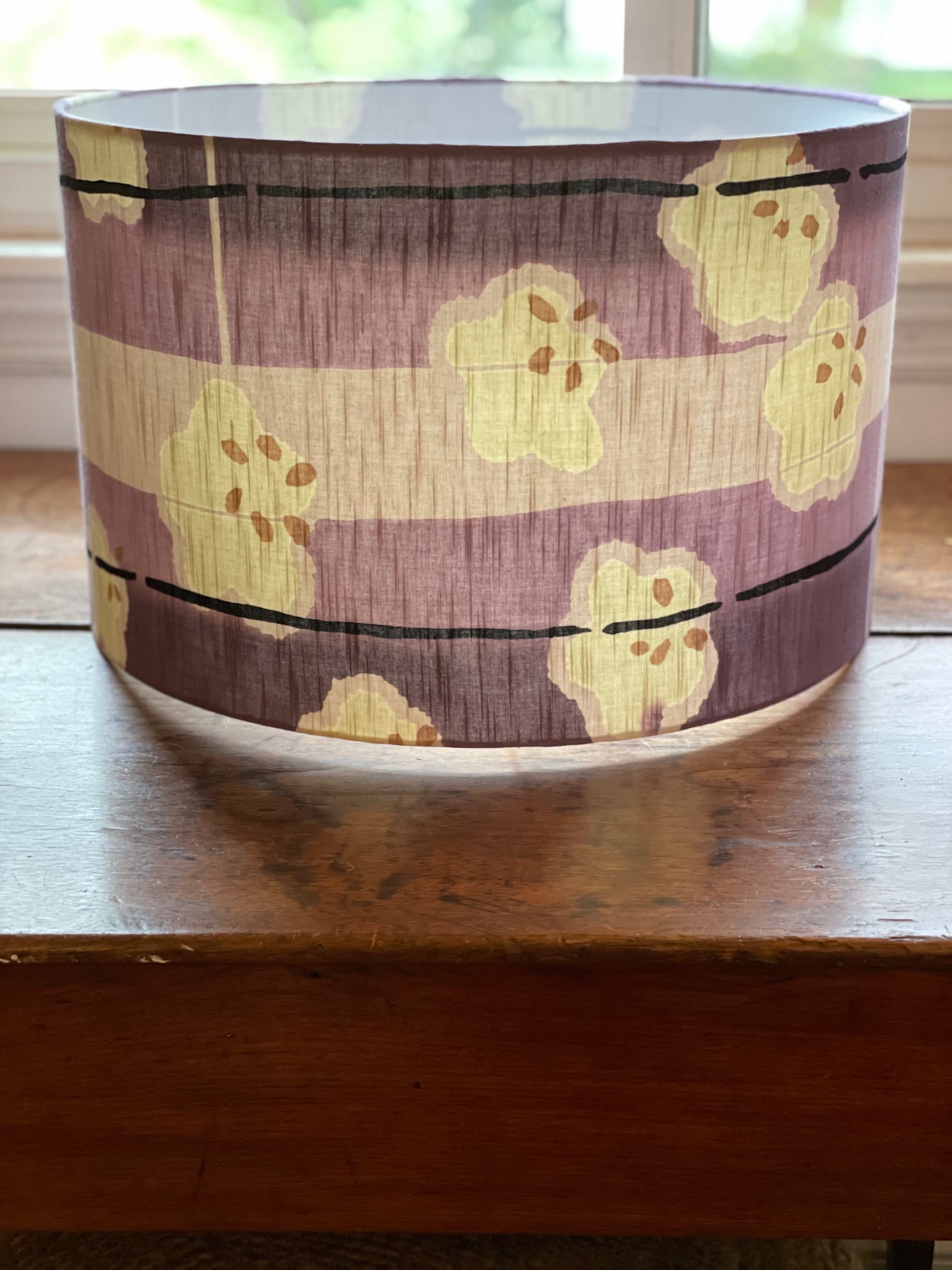 This lampshade is handmade, with vintage, hand printed, hand woven, and/or hand dyed fabric. There will be slight differences, and tiny flaws that would not appear on a mass produced item. I make the shades as carefully as possible, so if there’s ever a problem, please contact me. I’m always happy to work out an exchange or return if you are unsatisfied.