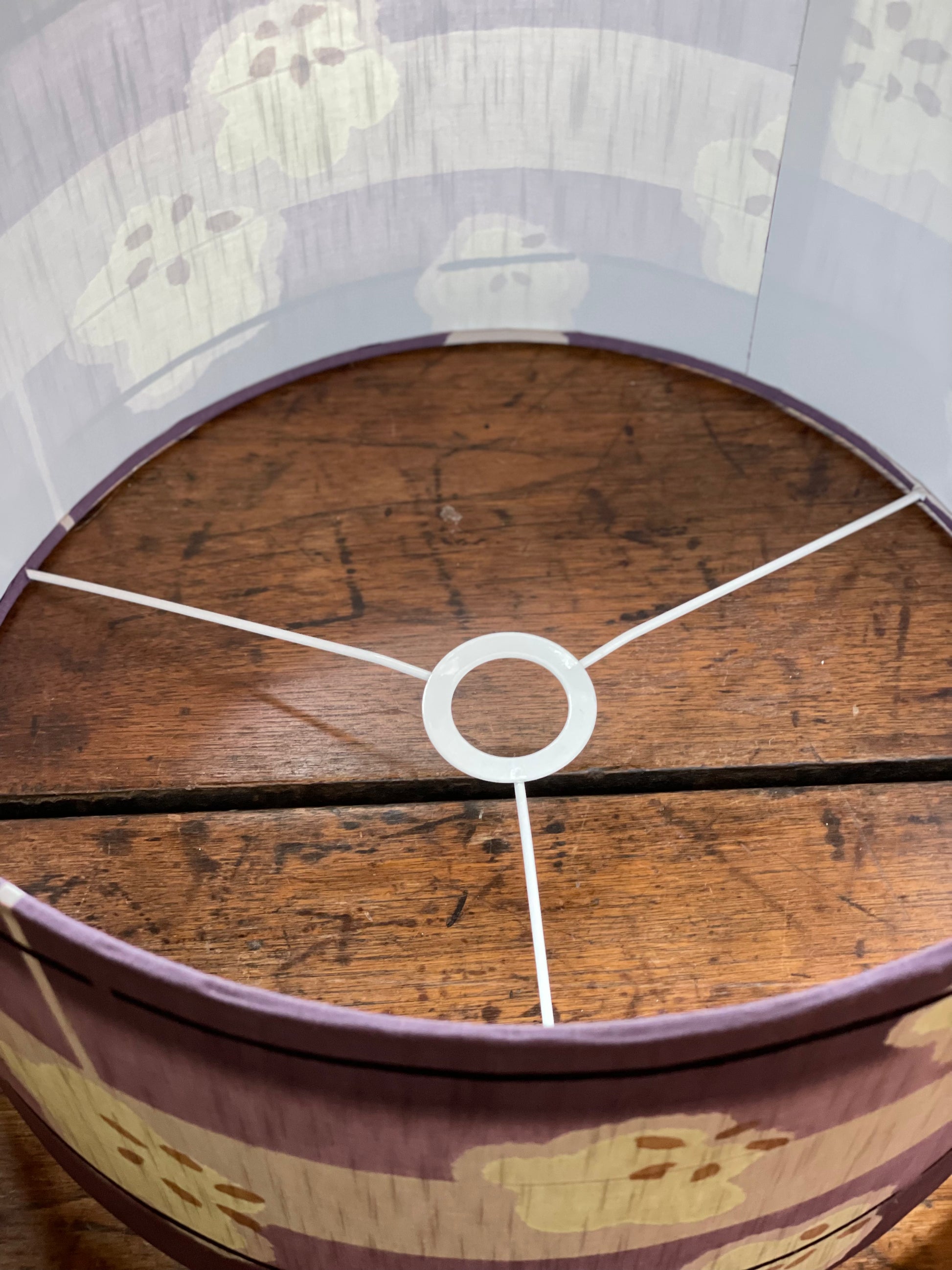 16 Inch Drum Lampshade. Vintage Summer Kimono Fabric. Slightly Textured shades of Lilac, Smoky Purple and Grey.