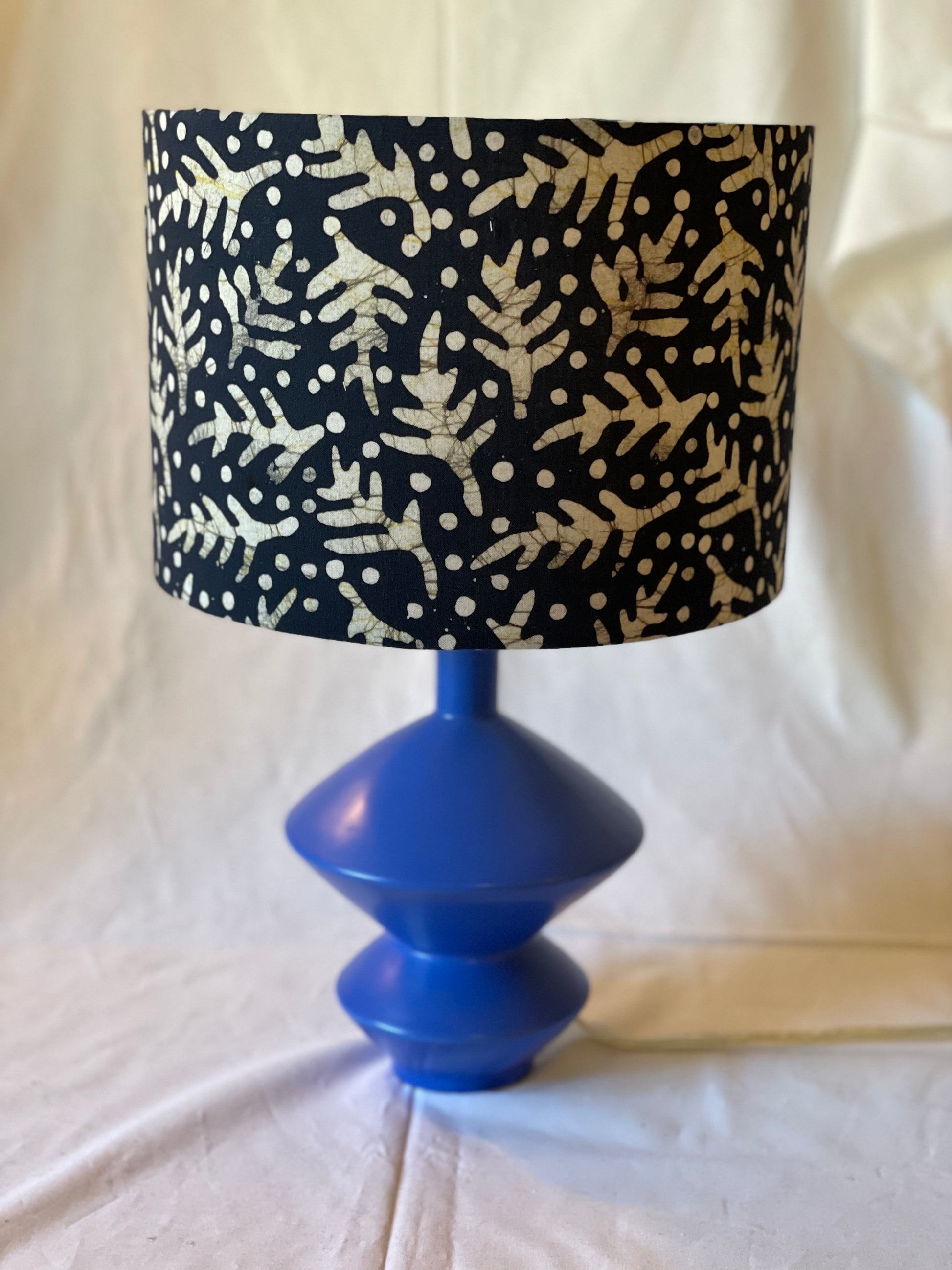 10 inch Drum Lampshade. Kutchi Indigo Batik.
