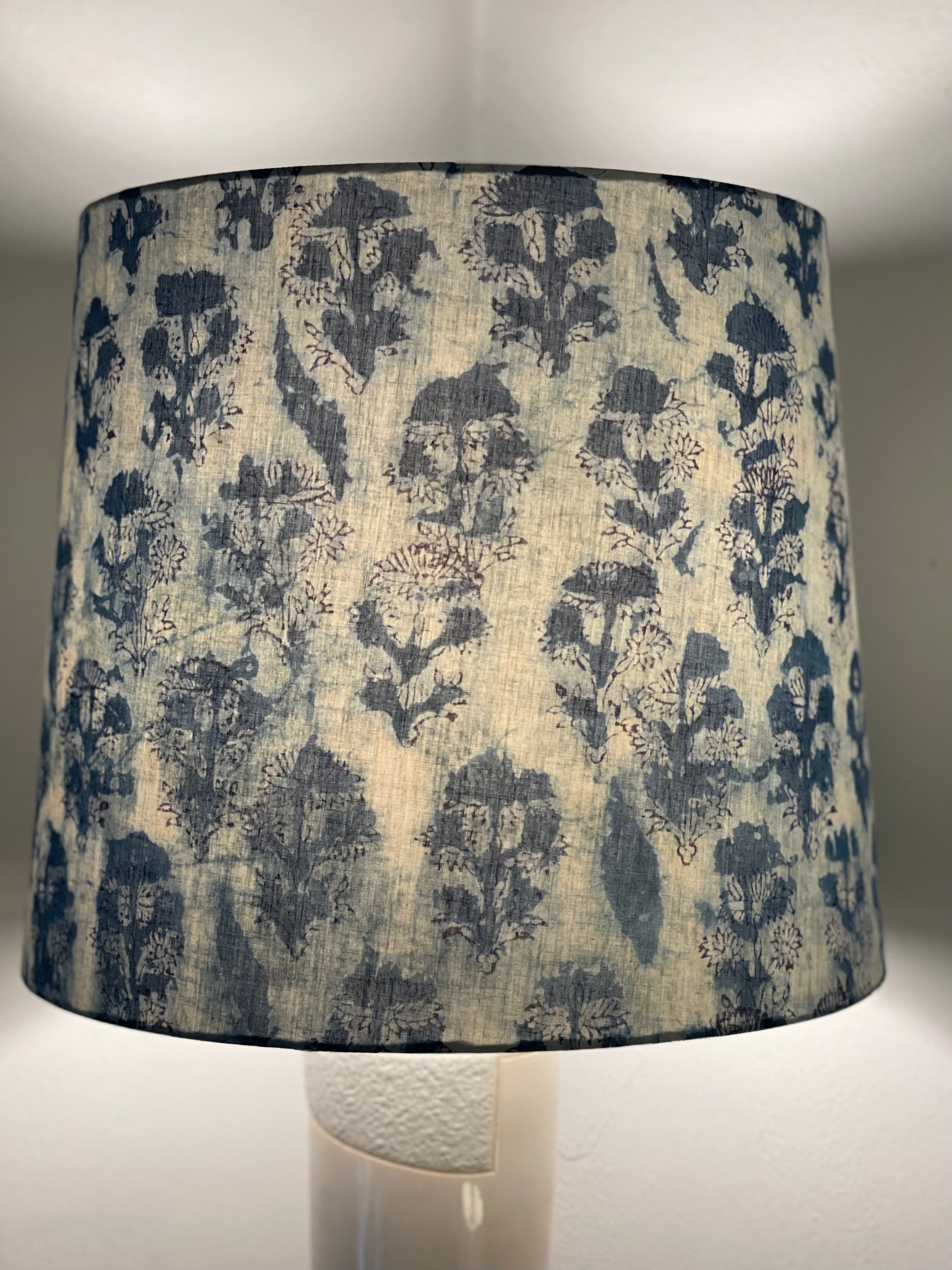 Large Empire Lampshade. 11.75 x 13.75 x 11.75. Indigo Hand Batik. Painterly Floral Blue and White.