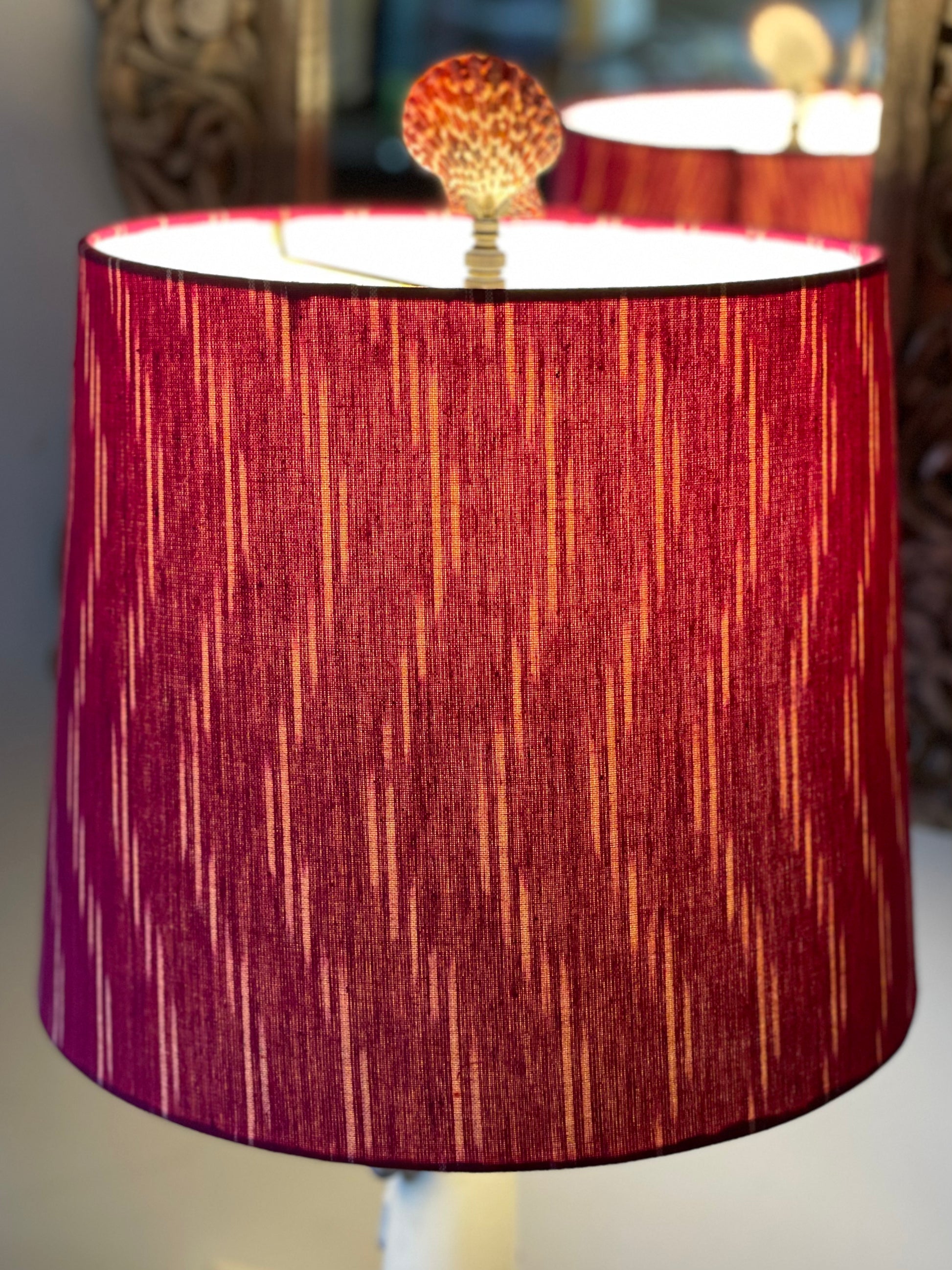 Medium Empire Lampshade. Indian Pochampally Ikat Weave Cotton Fabric. Plum and Ivory.