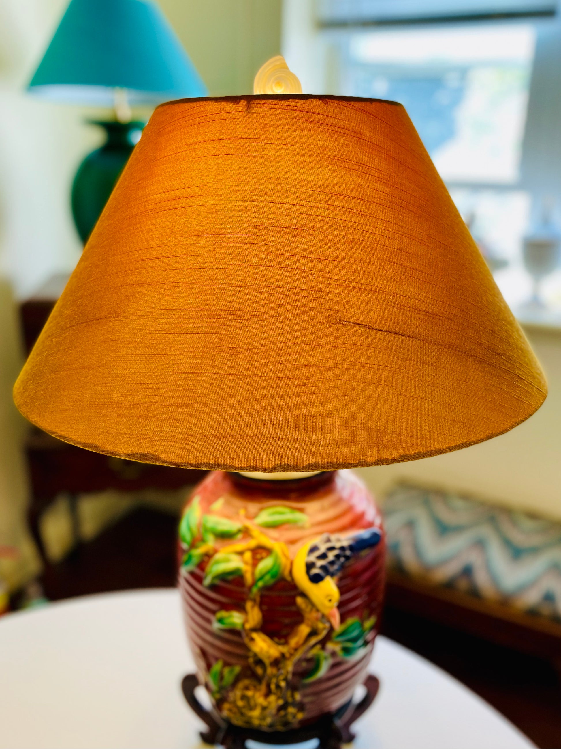 This lampshade is handmade, with vintage, hand printed, hand woven, and/or hand dyed fabric. There will be slight differences, and tiny flaws that would not appear on a mass produced item. I make the shades as carefully as possible, so if there’s ever a problem, please contact me. I’m always happy to work out an exchange or return if you are unsatisfied.