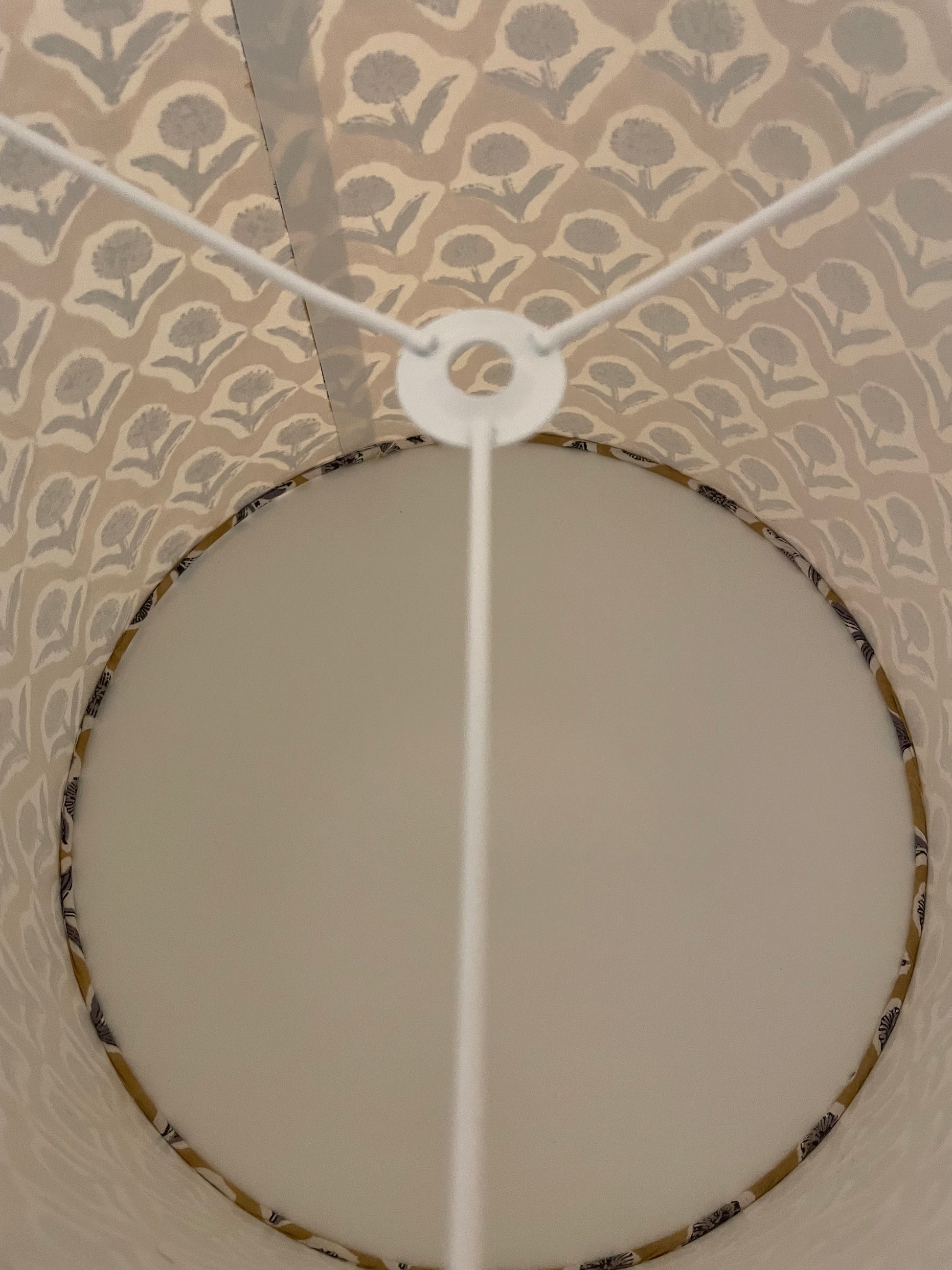 This lampshade is handmade, with vintage, hand printed, hand woven, and/or hand dyed fabric. There will be slight differences, and tiny flaws that would not appear on a mass produced item. I make the shades as carefully as possible, so if there’s ever a problem, please contact me. I’m always happy to work out an exchange or return if you are unsatisfied.