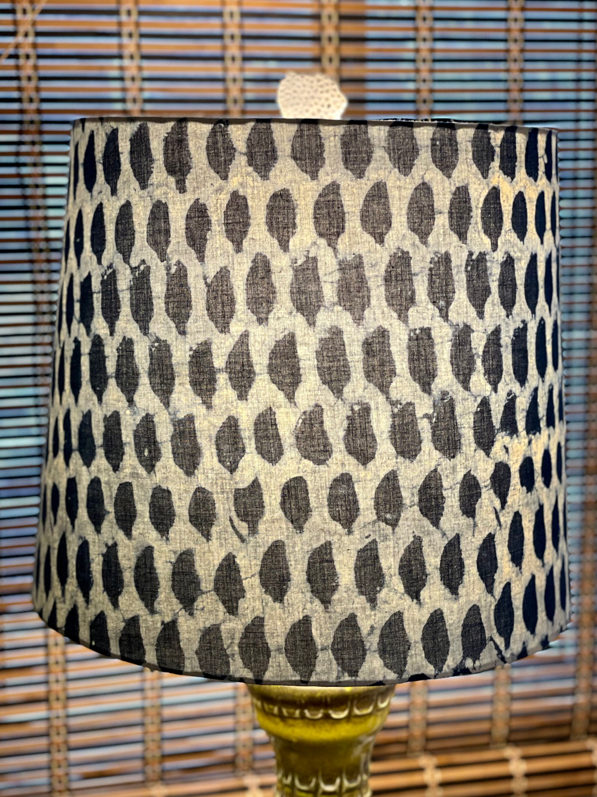 This lampshade is handmade, with vintage, hand printed, hand woven, and/or hand dyed fabric. There will be slight differences, and tiny flaws that would not appear on a mass produced item. I make the shades as carefully as possible, so if there’s ever a problem, please contact me. I’m always happy to work out an exchange or return if you are unsatisfied.
