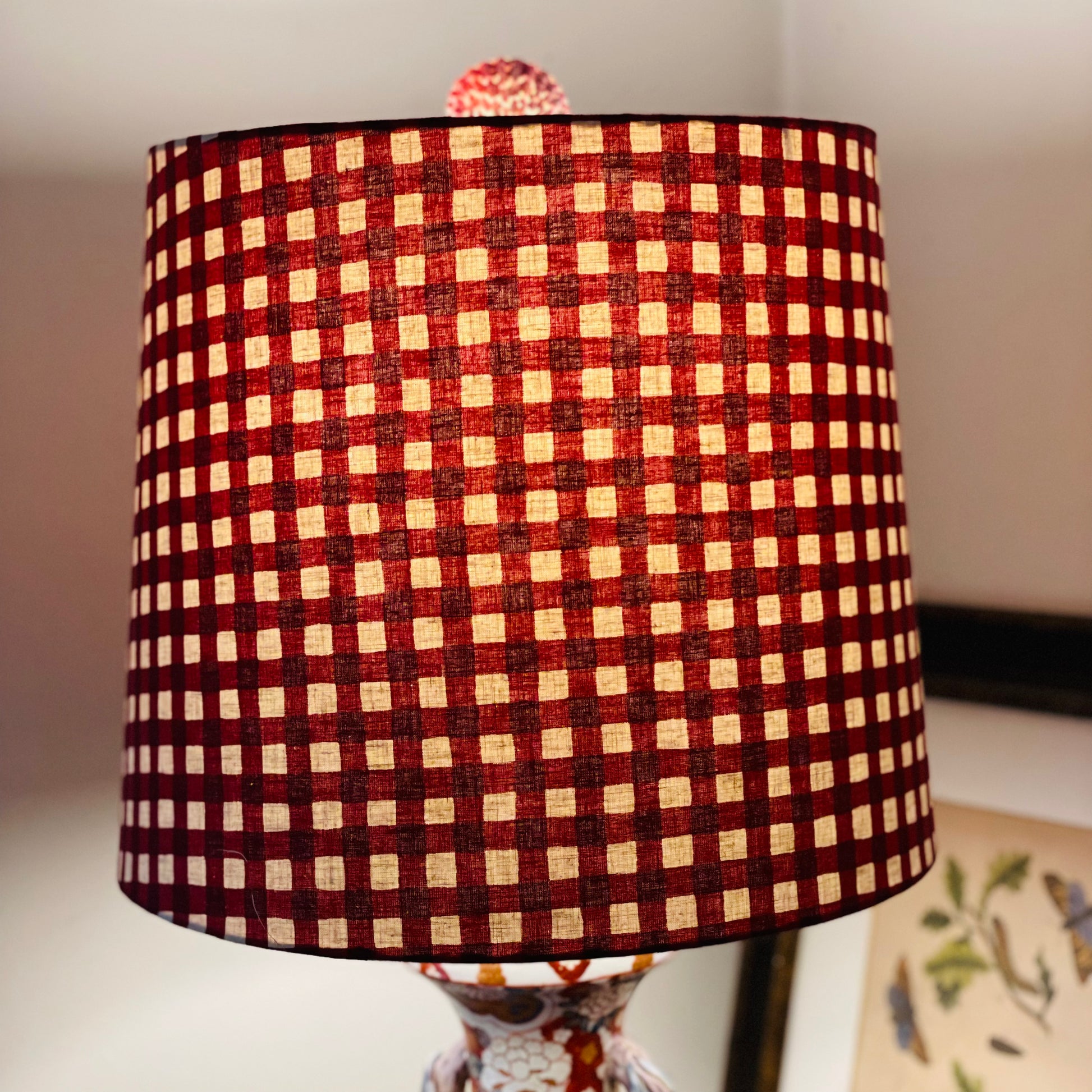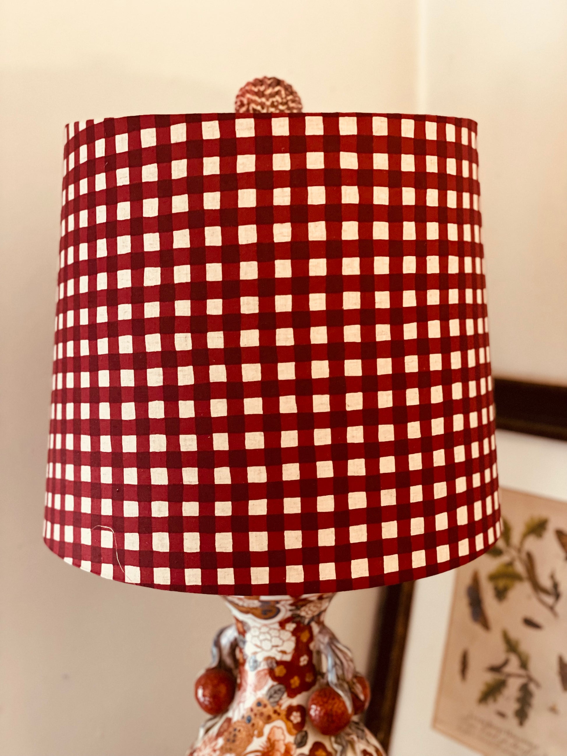 Large Empire Shade. 11.75 x 13.75 x 11.75. Maroon-Red Gingham Cotton-Linen from Japan.