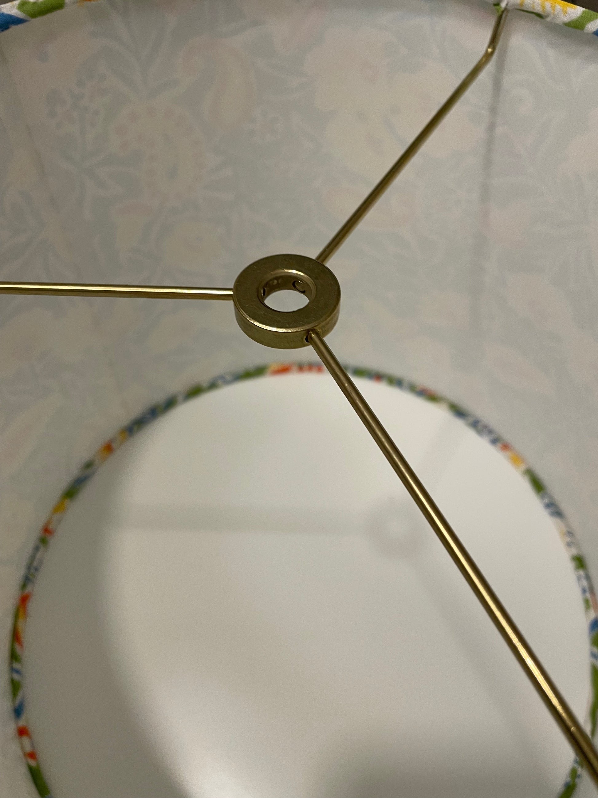 This is medium sized Empire lampshade (10 x 11.75 x 10) with a spider fitting. If you'd prefer a duplex fitting in order to hang it, just let me know! In many cases these shades can be customized, unless it's a rare fabric and the shade is already made.