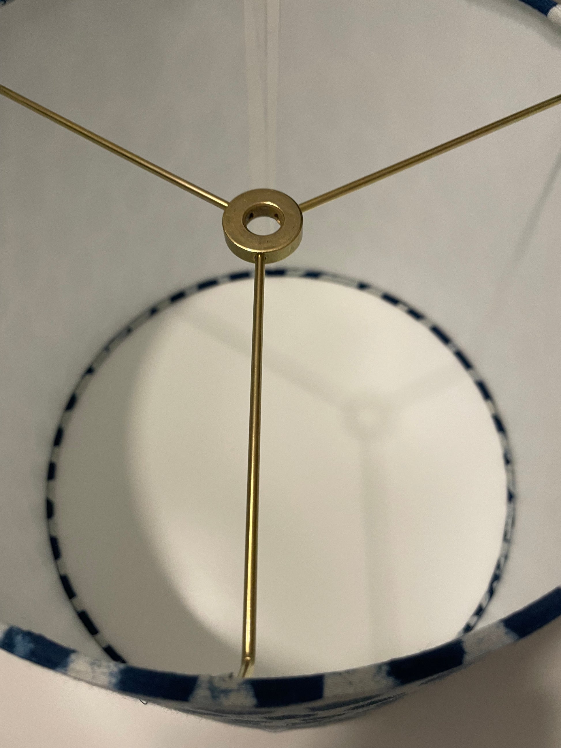 This is medium sized Empire lampshade (10 x 11.75 x 10) with a spider fitting. If you'd prefer a duplex fitting in order to hang it, just let me know! In many cases these shades can be customized, unless it's a rare fabric and the shade is already made.