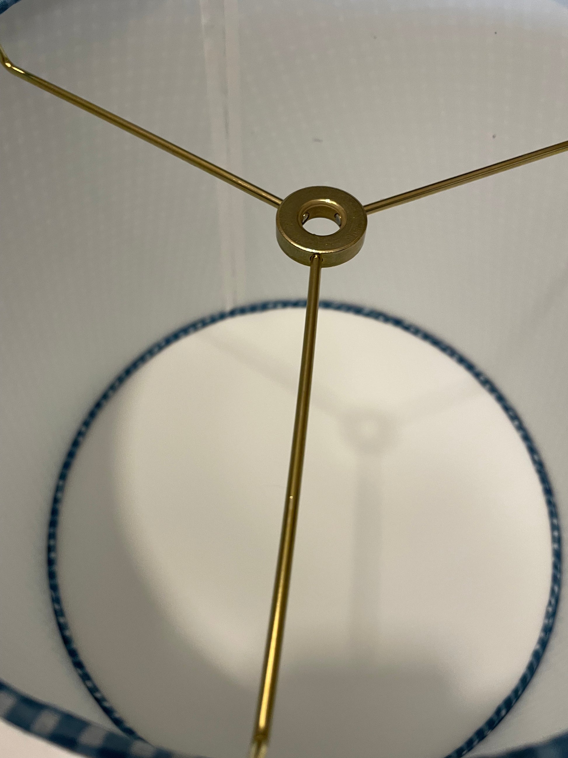 This is medium sized Empire lampshade (10 x 11.75 x 10) with a spider fitting. If you'd prefer a duplex fitting in order to hang it, just let me know! In many cases these shades can be customized, unless it's a rare fabric and the shade is already made.
