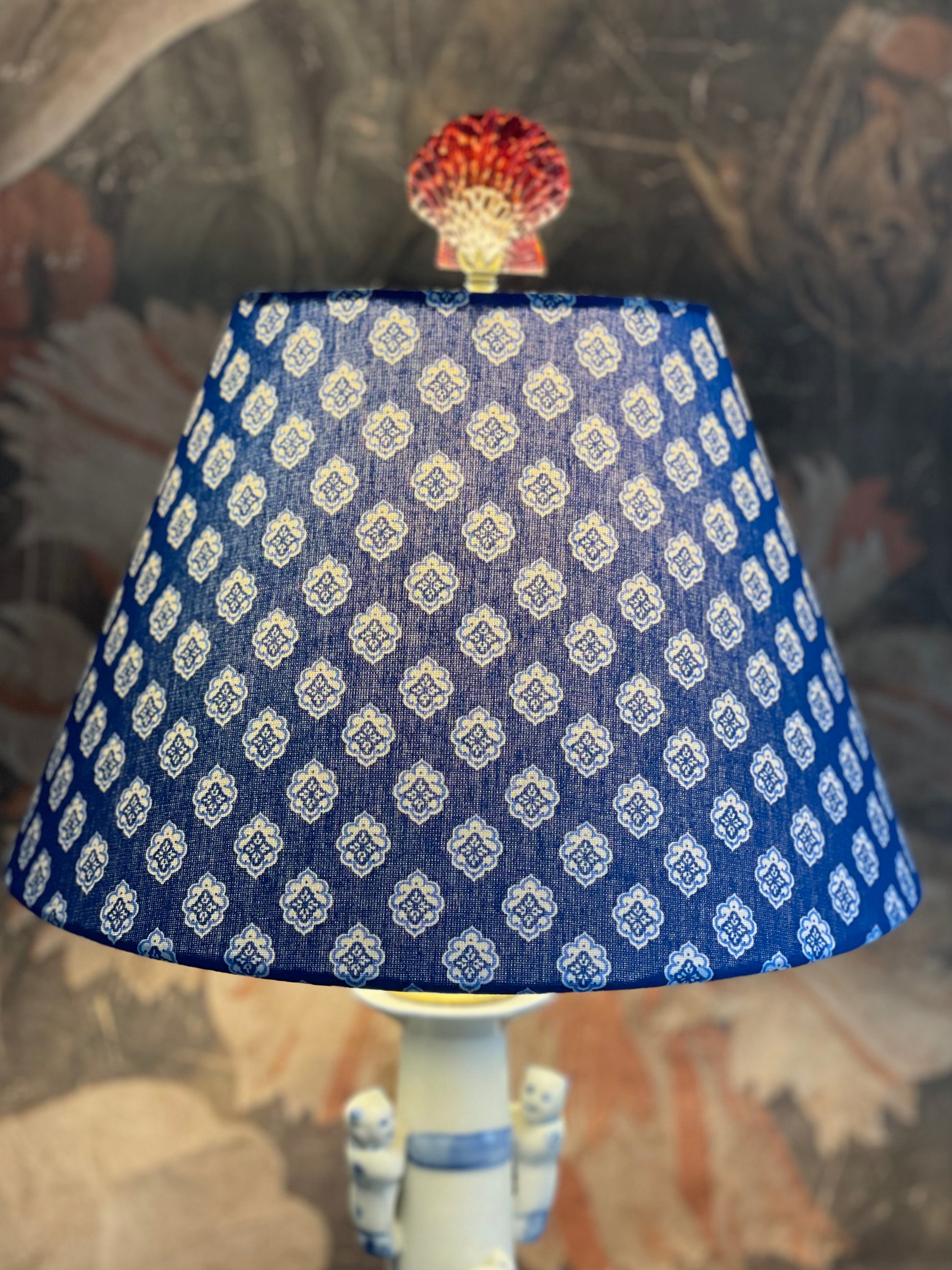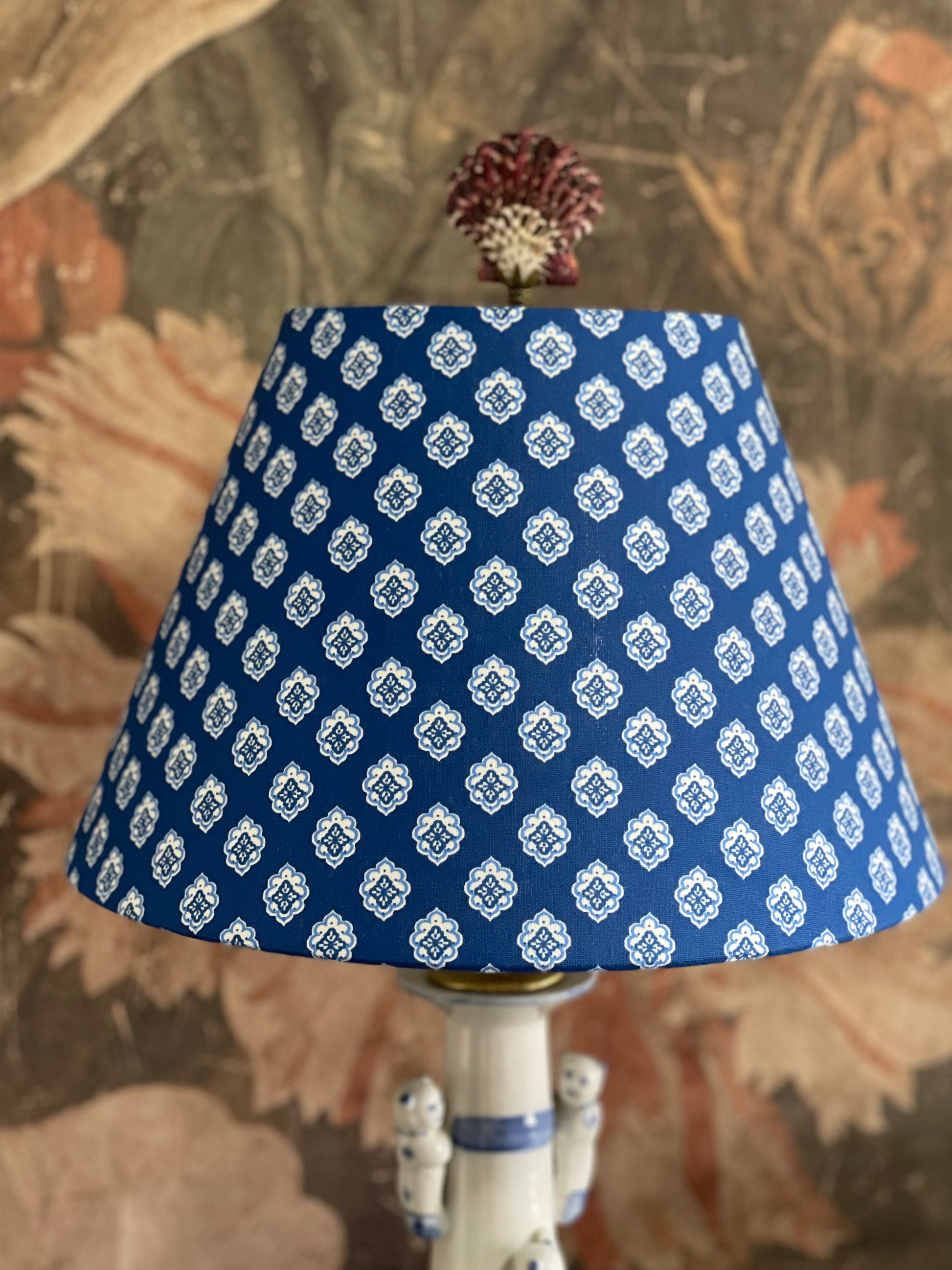 Small Conical Lampshade. French Jacquard. "Antibes" Blue and White.
