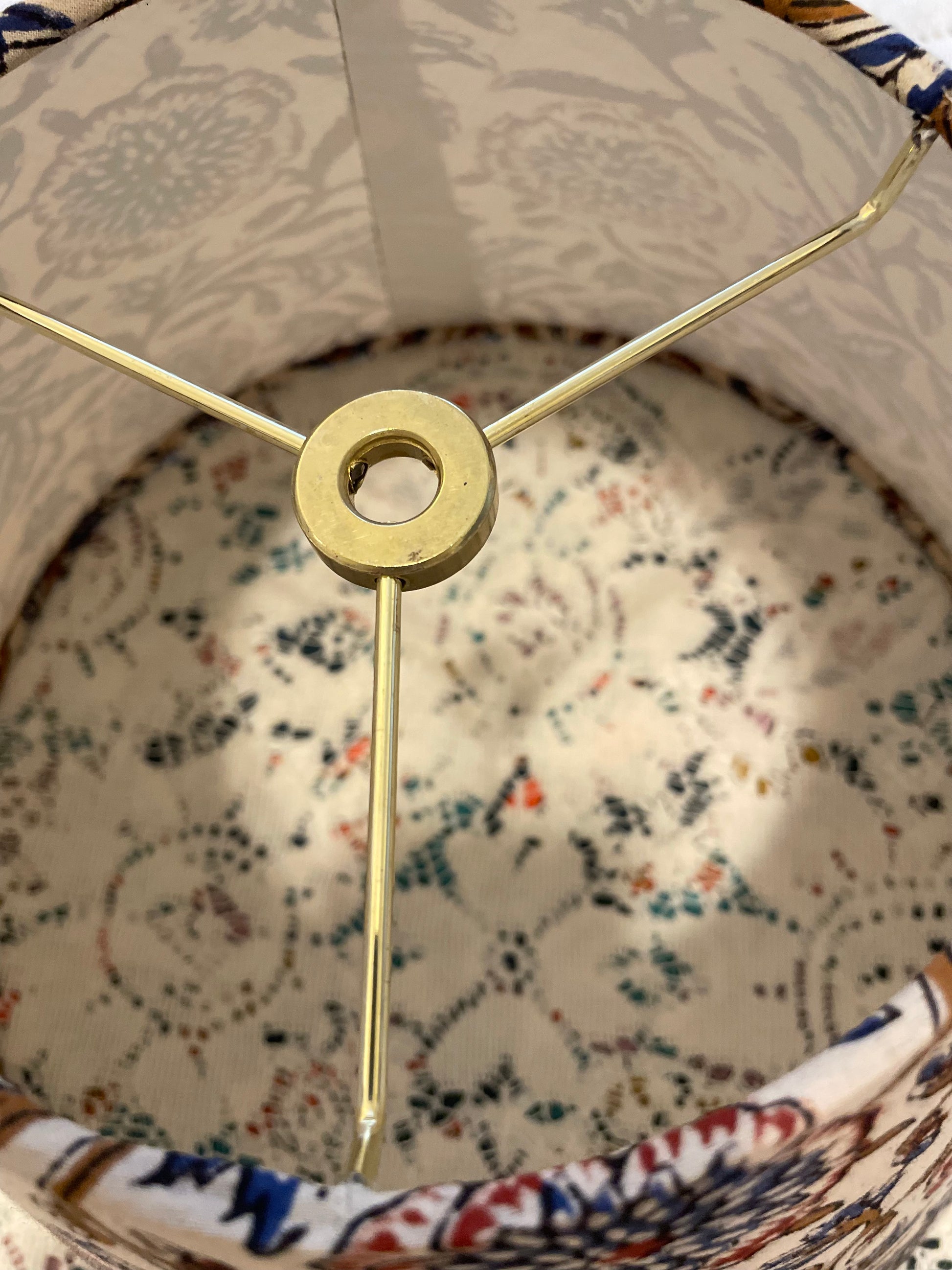This lampshade is handmade, with vintage, hand printed, hand woven, and/or hand dyed fabric. There will be slight differences, and tiny flaws that would not appear on a mass produced item. I make the shades as carefully as possible, so if there’s ever a problem, please contact me. I’m always happy to work out an exchange or return if you are unsatisfied.
