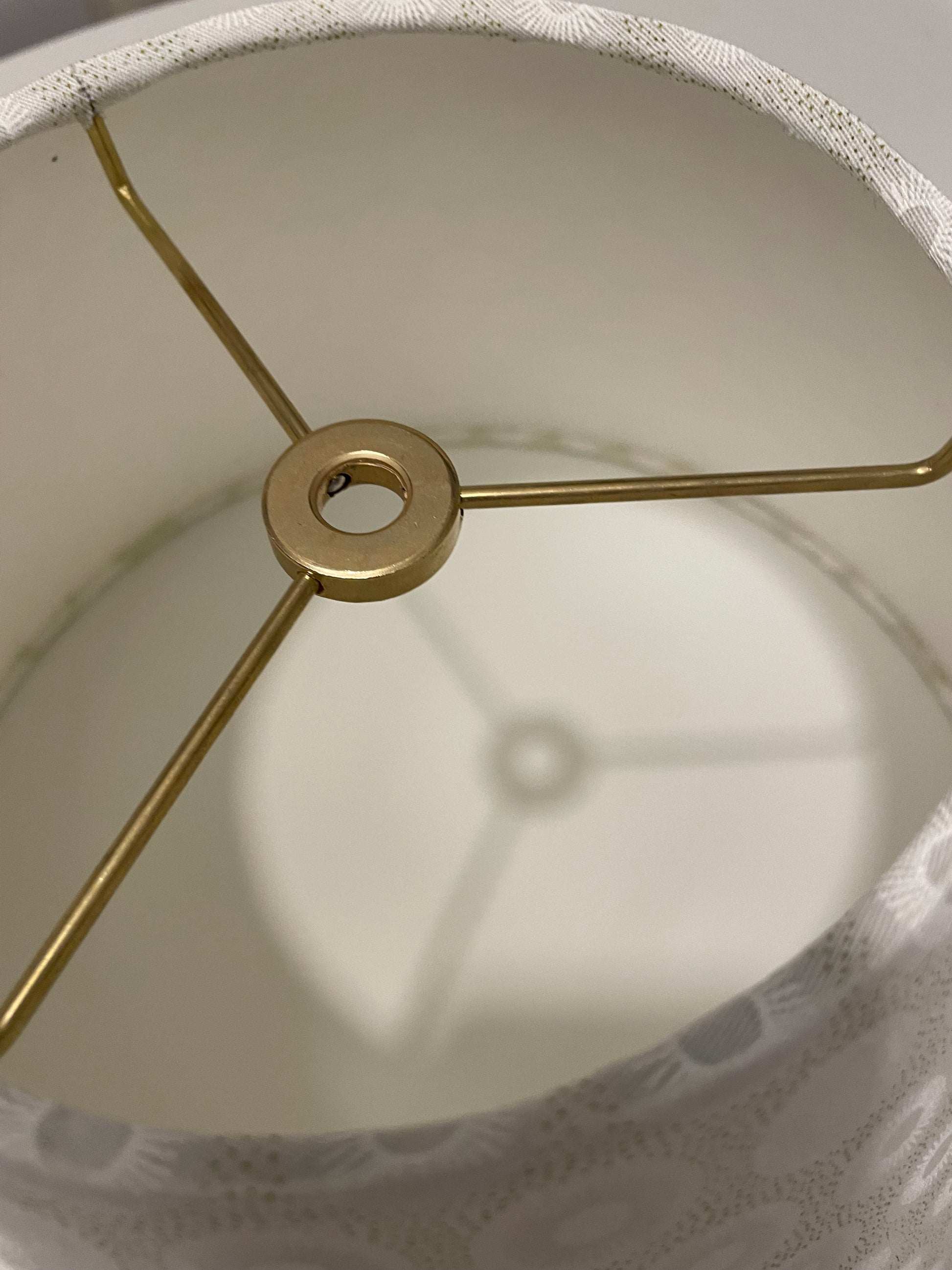 This is small lampshade (6 top x 11.75 bottom x 8 height) with a spider fitting.