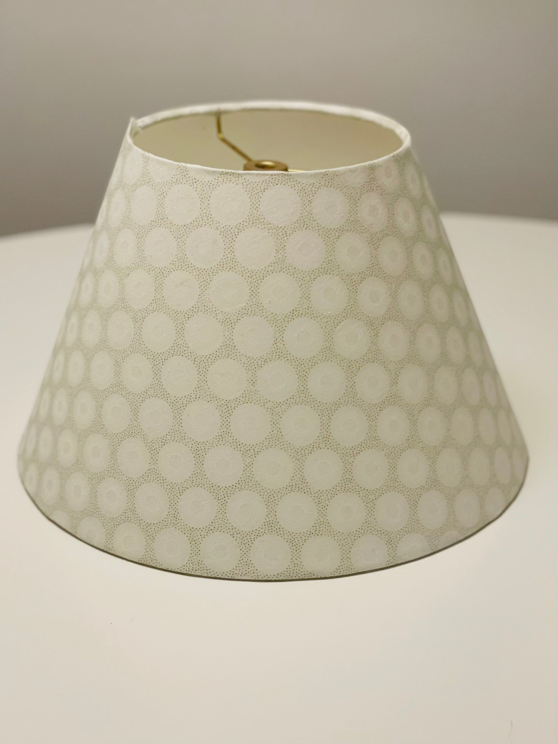 Small Conical Lampshade. Lovely South African Shwe Shwe Fabric- White and Gold.
