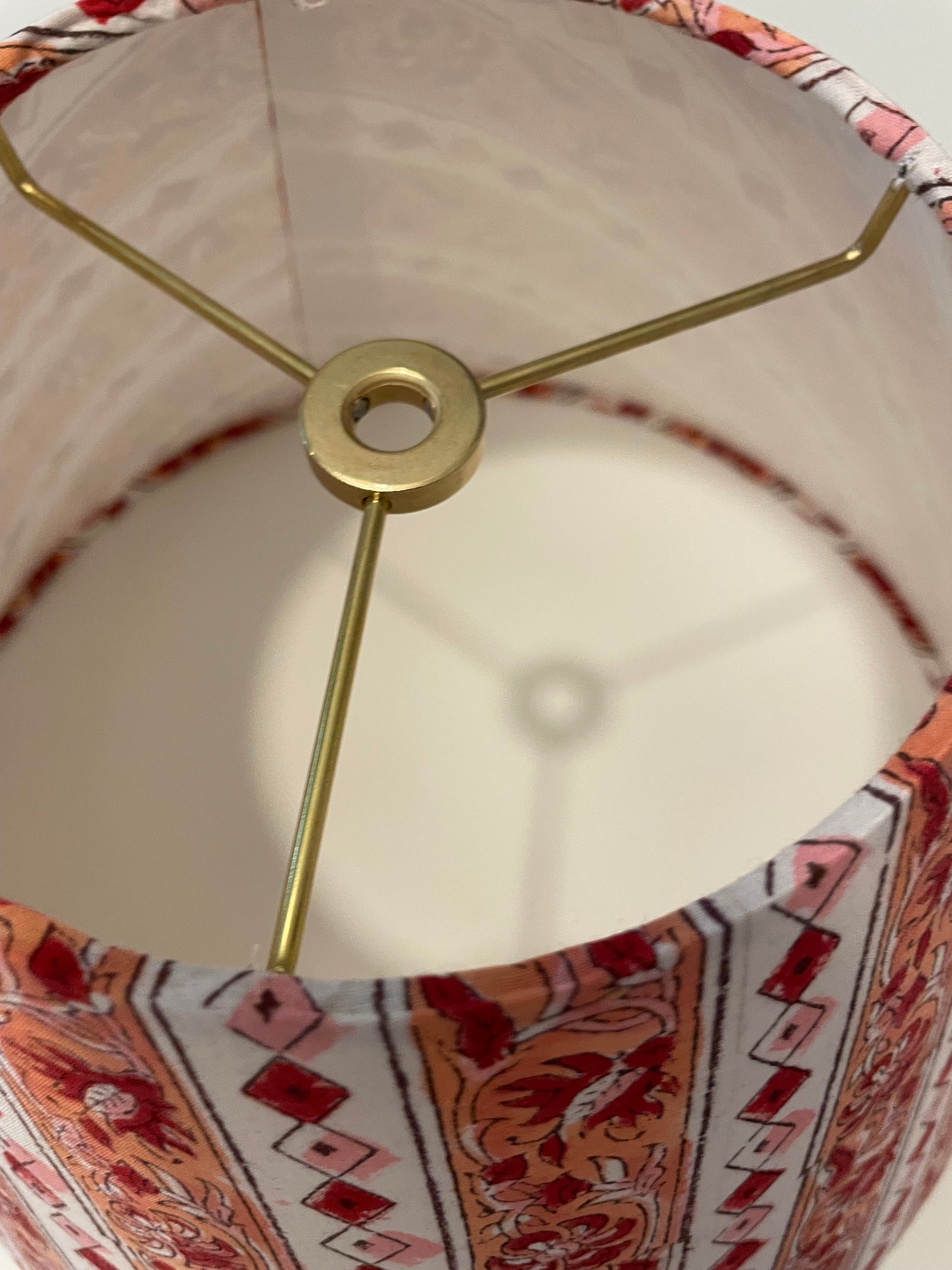 This lampshade is handmade, with vintage, hand printed, hand woven, and/or hand dyed fabric. There will be slight differences, and tiny flaws that would not appear on a mass produced item. I make the shades as carefully as possible, so if there’s ever a problem, please contact me. I’m always happy to work out an exchange or return if you are unsatisfied.