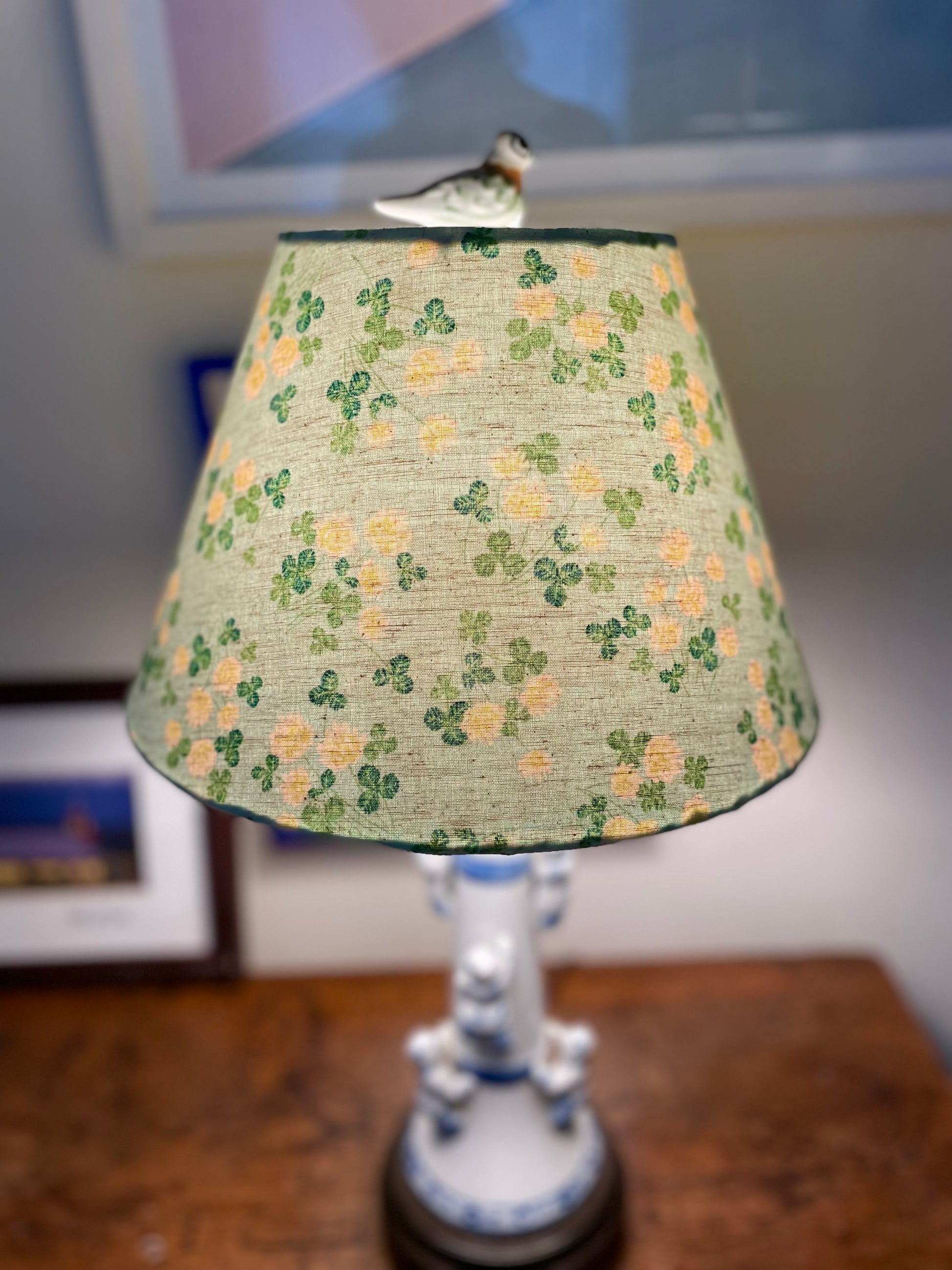 This lampshade is handmade, with vintage, hand printed, hand woven, and/or hand dyed fabric. There will be slight differences, and tiny flaws that would not appear on a mass produced item. I make the shades as carefully as possible, so if there’s ever a problem, please contact me. I’m always happy to work out an exchange or return if you are unsatisfied.