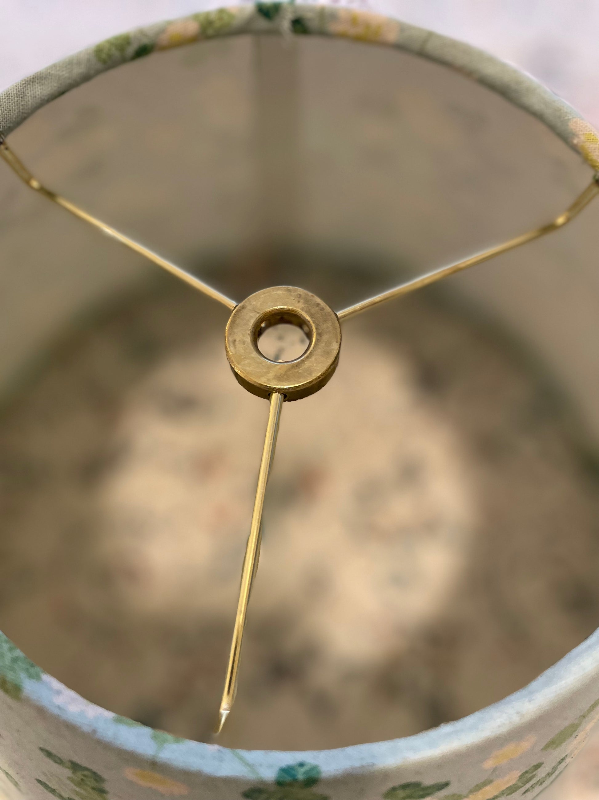 This is small lampshade (6 top x 11.75 bottom x 8 height) with a spider fitting.